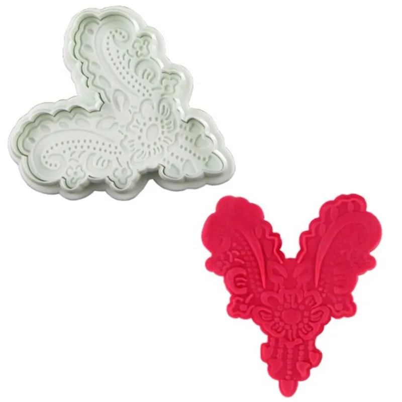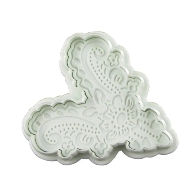 Découpoir éjecteur cœur motif cachemire spécial fondant, pâte à sucre et pâte d’amandes.