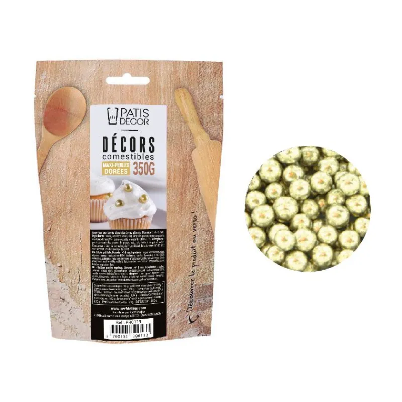 Laissez parler votre créativité grâce à ces maxi perles comestibles dorées à parsemer sur vos desserts, cupcakes, cake pops et autres pâtisseries.