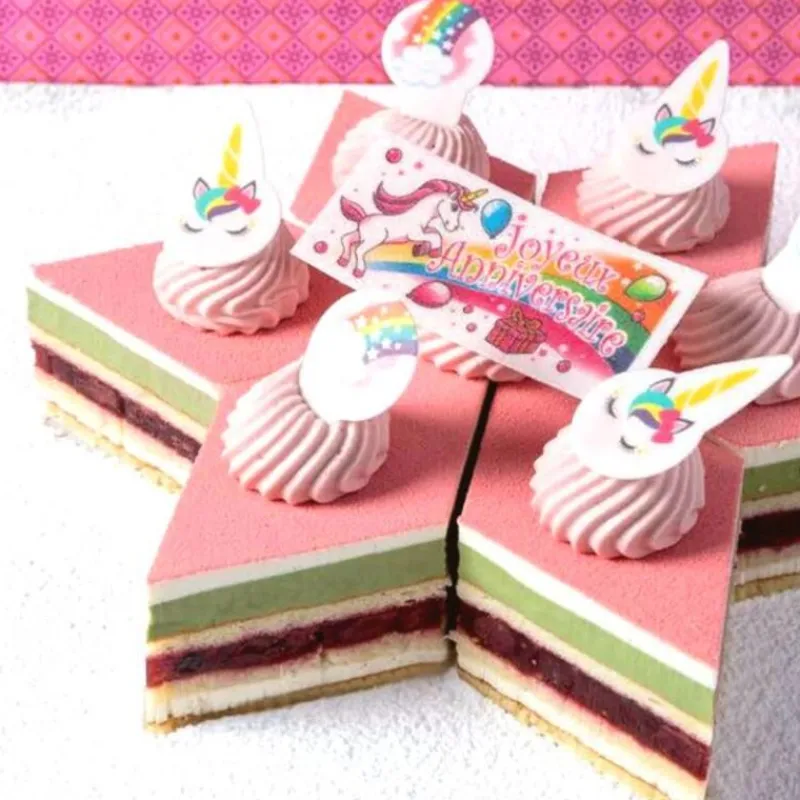 24 pics licorne et arc-en-ciel en azyme pour la décoration des gâteaux d’anniversaire enfants et de cupcakes.