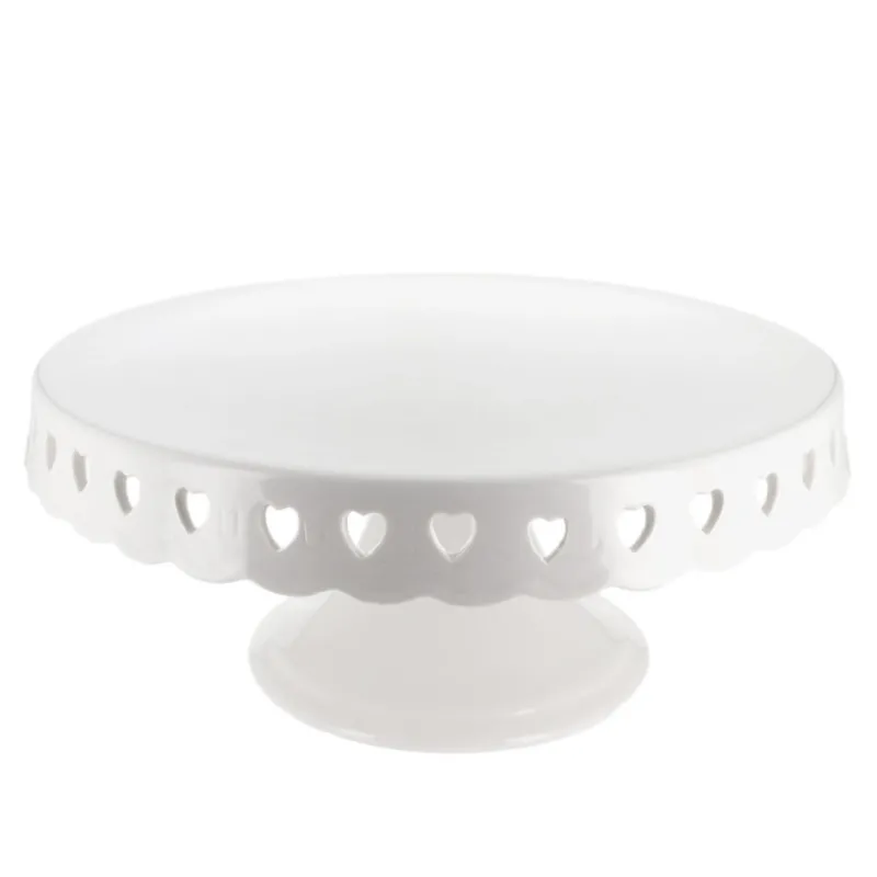 Ce présentoir à gâteaux en céramique blanche a un design élégant et romantique.